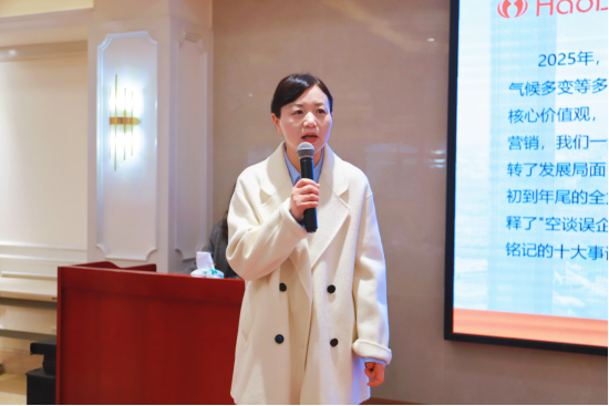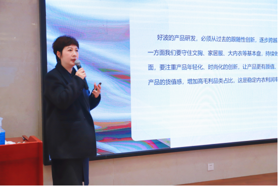 随后,好波内衣副总经理梁小琼女士在会上对2025年度好波内衣的发展情况进行了汇报,好波内衣副总经理丁莉女士随后也将2026年度好波内衣的发展规划做了详细介绍。